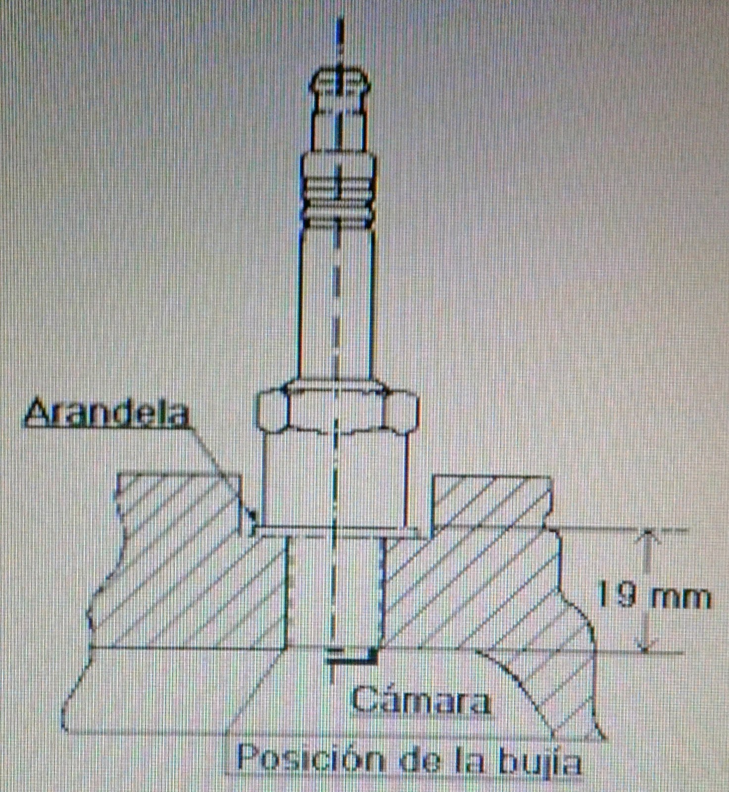alojamiento de la bujía, el cual deberá estar al ras de la superficie de la